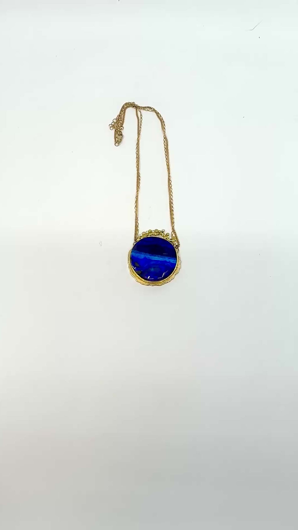 Embrace nocturnal elegance with the "Skinny Dipping" boulder opal necklace. This captivating piece showcases a vibrant boulder opal—hand-selected for its luminous play of color—complemented by sparkling diamonds set in a refined blend of 22k, 18k, and 14k gold. The interplay of precious metals creates depth and sophistication, while the opal's natural beauty evokes the freedom and joy of a moonlit escape. A wearable celebration of fine craftsmanship and artistic vision, this necklace transforms any ensemble into something extraordinary.