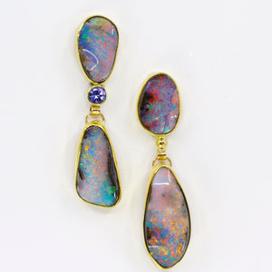 Boulder Opal Earrings Tanzanite 22k 18k Gold